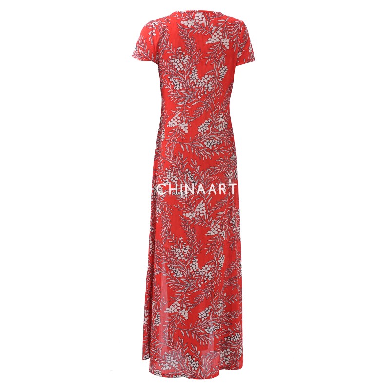 knitted long dress,short sleeves,buttons ,long slits on bottom,slim dress