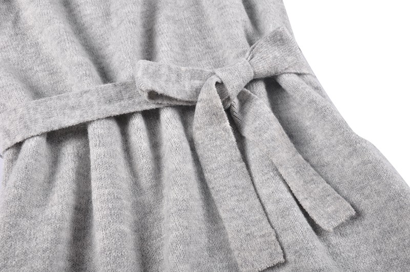 ladie's long dress sweater with long self fabric belt, polyester solid fabric
