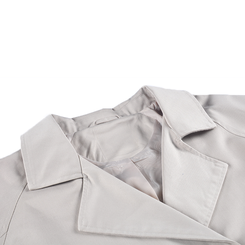 Double-breasted jacket,rubber at the inner waist,collar sharp is same as blazer's collar sharp
