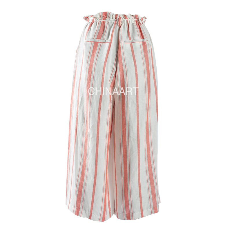 2020SS Ladies long trousers with stripe printing,have a cotton rope belt at waist