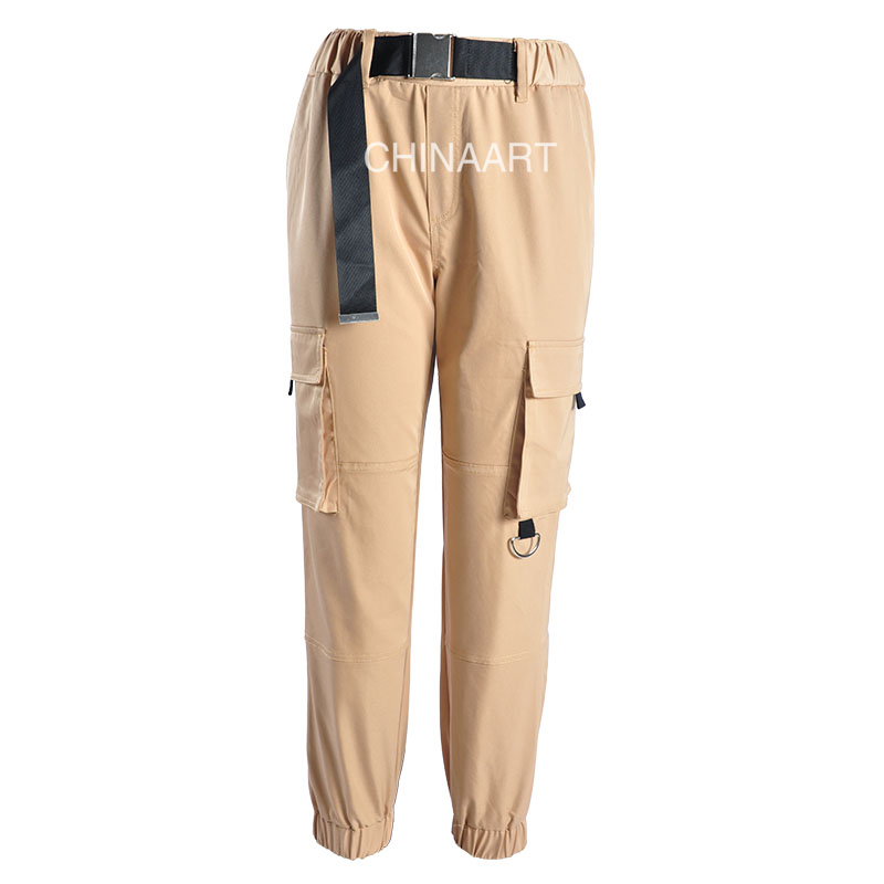 Women's Casual streetwear cargo Solid Color Pants with three-dimensional Pockets and belt in waist